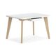 - Table top is made of engineered timber with a timber-look laminate. Comes with a handy slide-out plastic tray.