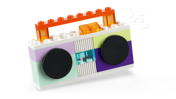 Lots of colorful bricks, plus eyes, wheels and hinges, maximize this versatile set’s playability. Buildable toys include a game controller, dinosaur with glasses, open-and-close cellphone, skateboard, monster truck and DJ kit with headphones. Models can be combined and customized for even more fun – such as putting the headphones on the dinosaur, and the dinosaur on the skateboard.