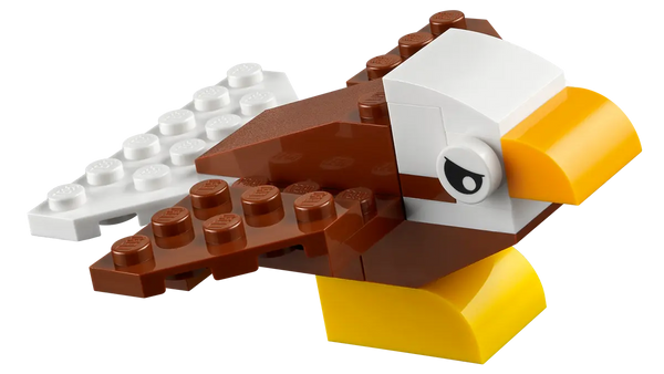 - Build a toy bald eagle, cactus, parrot, baby crocodile, orca, lion, palm tree, giraffe, red bus, kangaroo with joey, brown bear, Asian house, penguin with chick and fish, sailing boat and an airplane!
