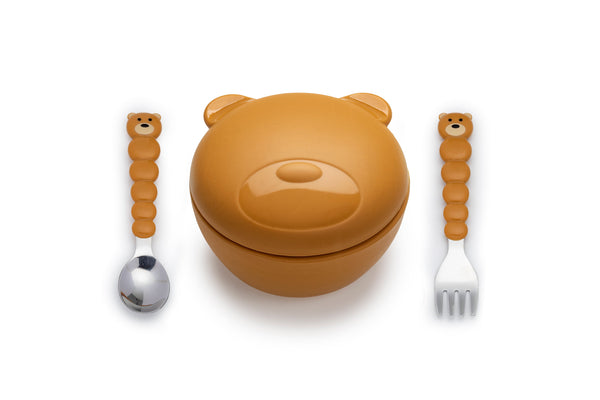 Melii Silicone Bowl with Lid & Utensils - Bear Brown