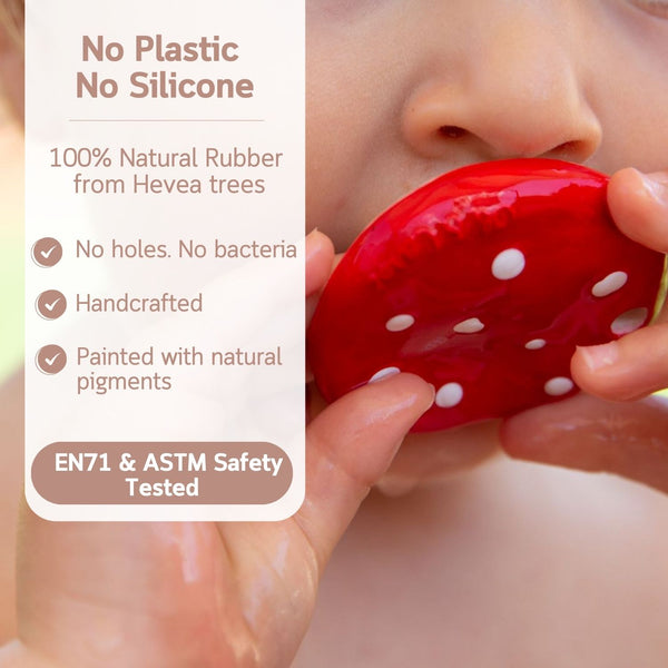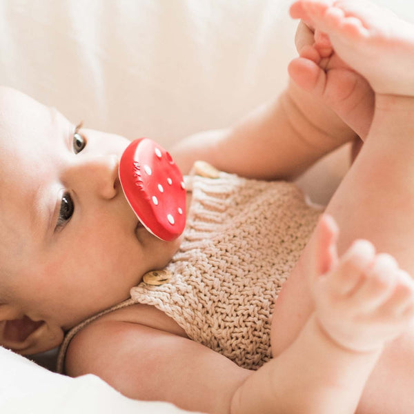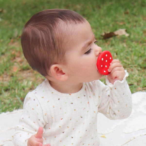 Spotty The Mushroom is the new baby mushroom teether concept for babies by Oli&Carol. Designed with an ergonomic shape making it easy to hold and chew on. Including a range of textures, such as raised spots or ribbing, making it very pleasing for little ones to soothe teething gums. This mini teether is easy to hang from a strap and chew it on the go€¦ take your chewy-to-go high & low!