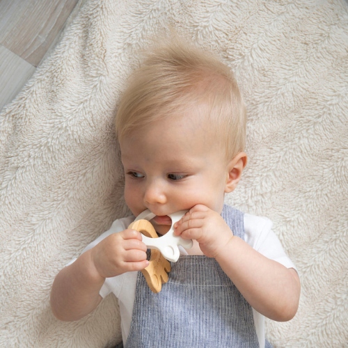 Do not sterilize. We advise you to wipe clean the surface of this teether with soapy water and a damp cloth. Examine your product carefully before each use, especially when the child has teeth. Pull the product in all directions and discard if it shows the slightest sign of deterioration or fragility. Do not expose to direct sunlight and keep away from source of heat and in a dry environment. As all product for babies, this teether must only be used under adult supervision.