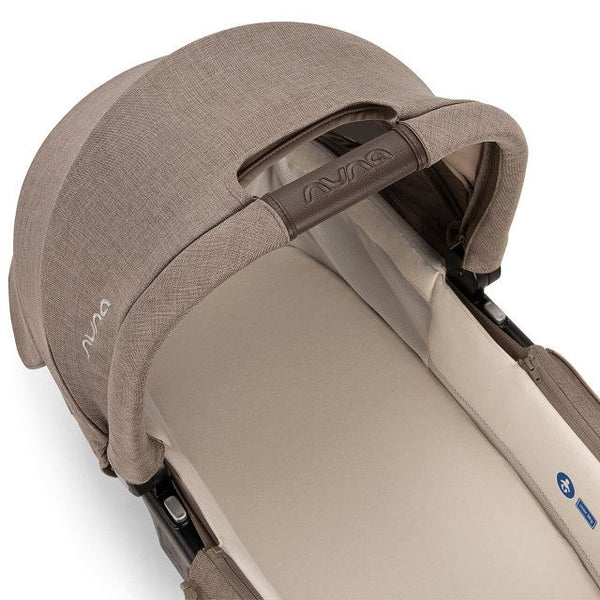The Nuna LYLT Carrycot is a specially designed accessory seamlessly compatible with Nuna Triv Next and TRVL strollers. This universal carrycot boasts a soft-lined interior with a mattress, a zip-off apron, and a spacious water-repellent UPF 50+ sun canopy featuring Dream drape™ and 2 ventilation panels for optimal protection and comfort.